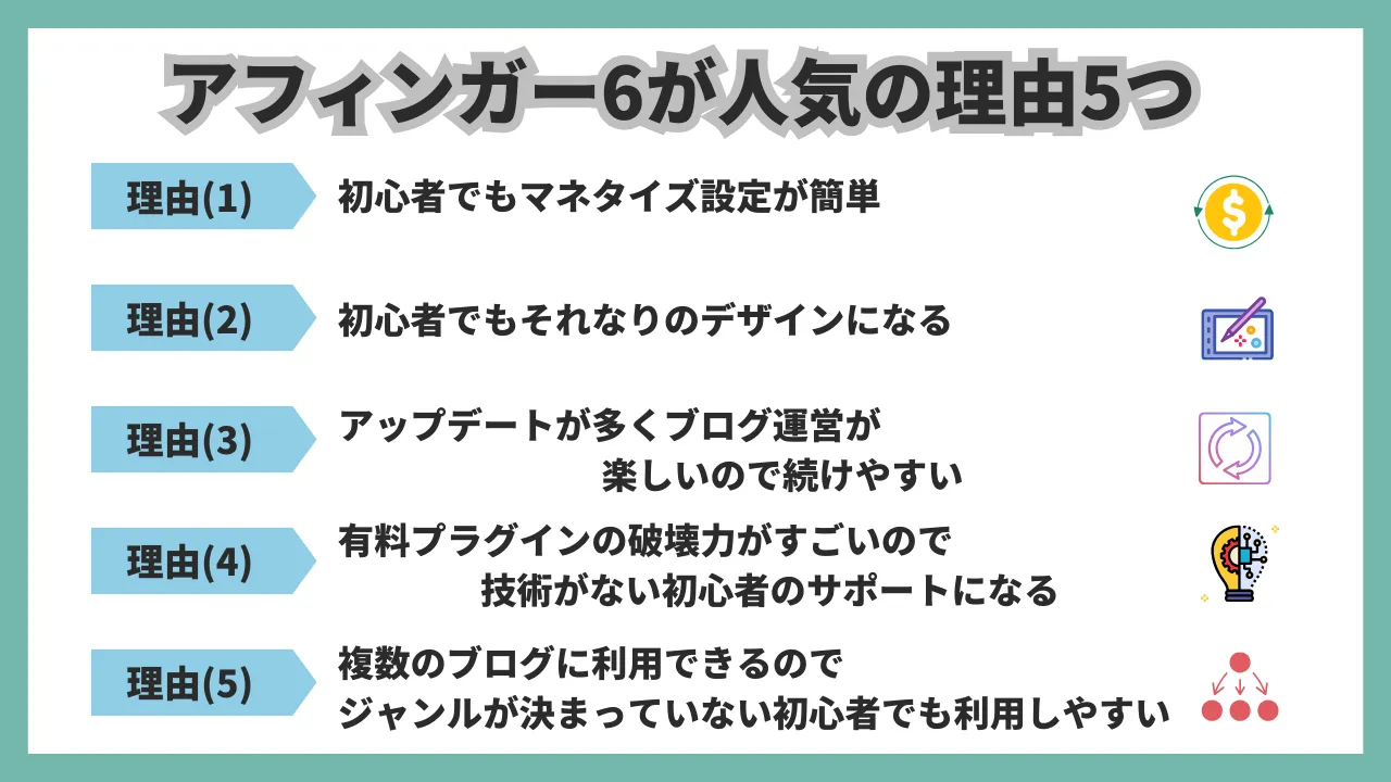 ブログ初心者にアフィンガー6がおすすめの理由5つ